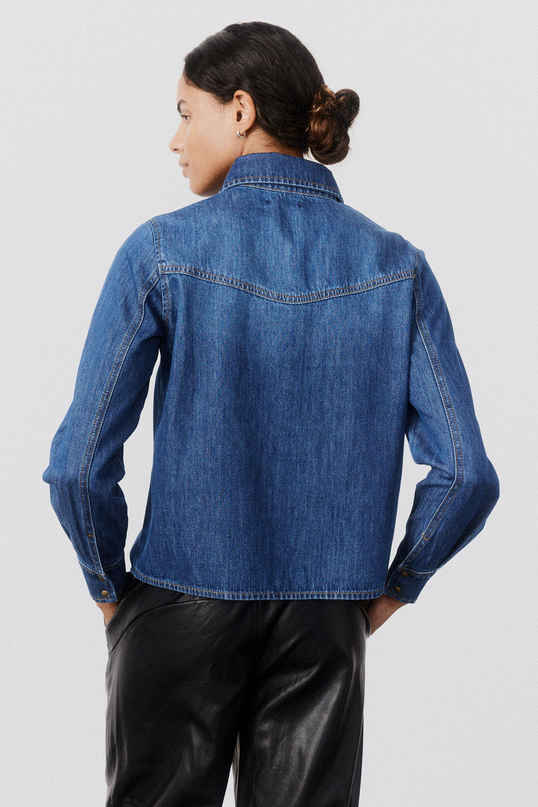 Use a soft measuring tape to measure from the highest point of your inner thigh to the bottom of where the pant will hit. For instance, if the inseam is 27”, you’ll measure 27” down.