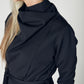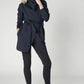 The Forever Jacket is fitted in the arms and shoulders but the waist can be adjusted (worn draped open or tied shut).