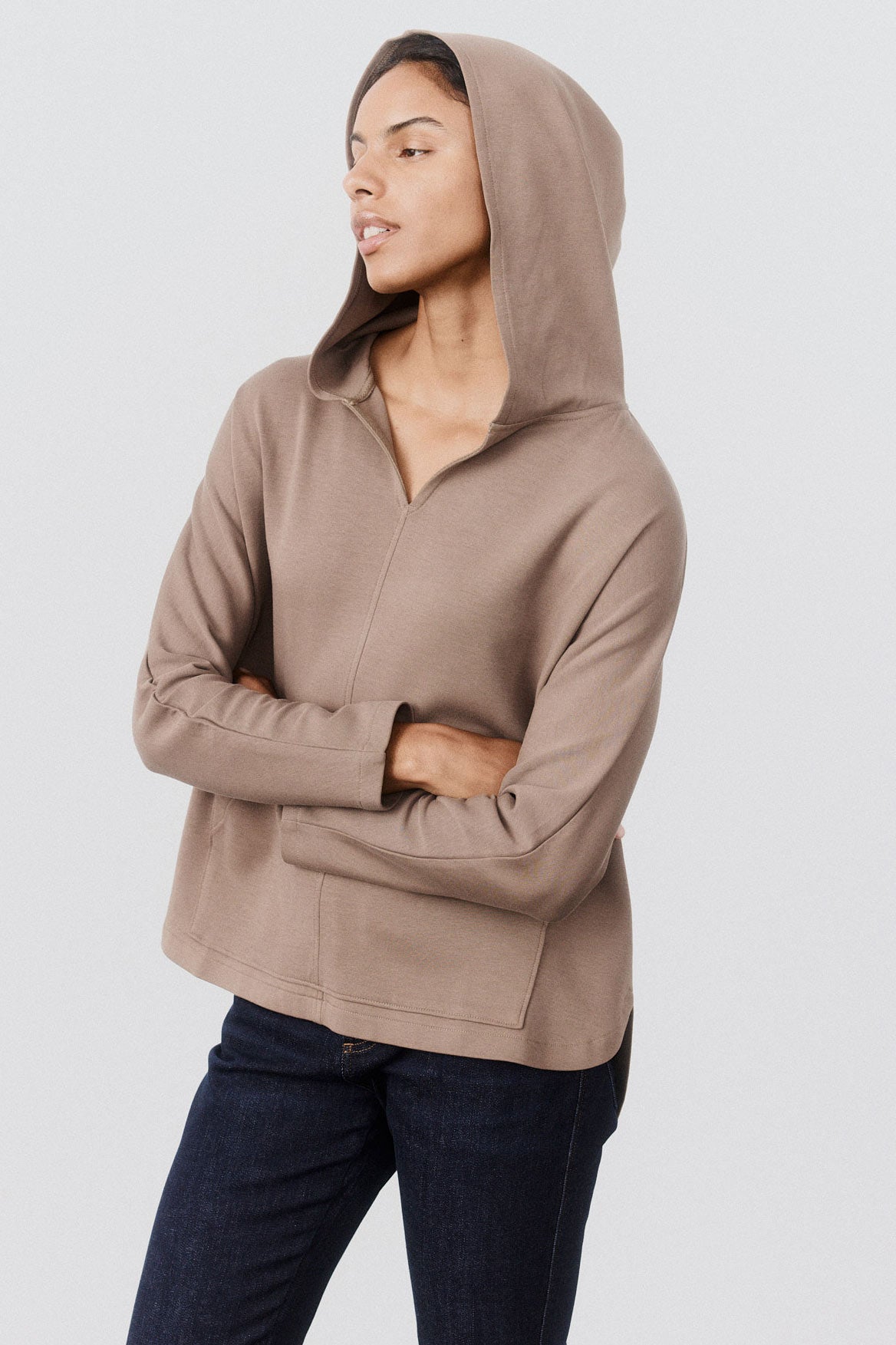 An oversized pullover with an urban edge, built in scuba fabric for structure and attitude. Throw it on with leggings, denim, or tailored trousers for a bold, off-duty look.