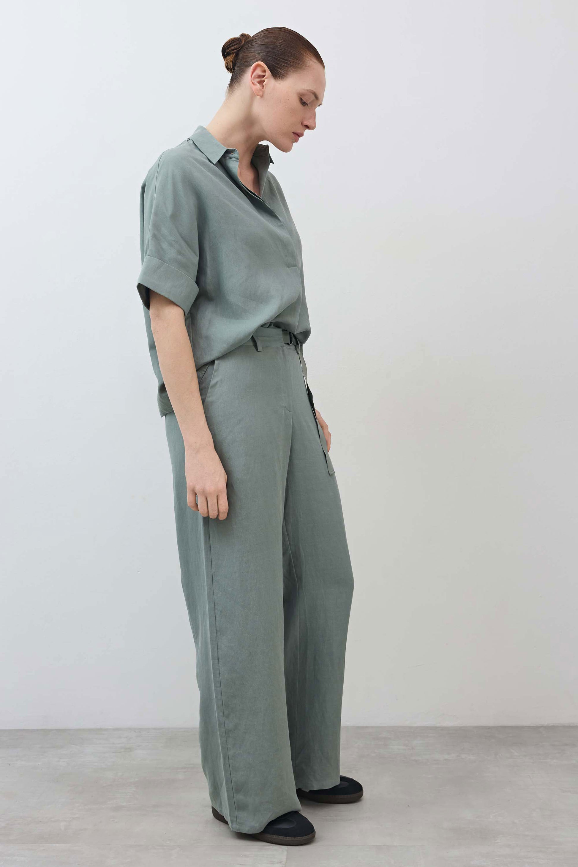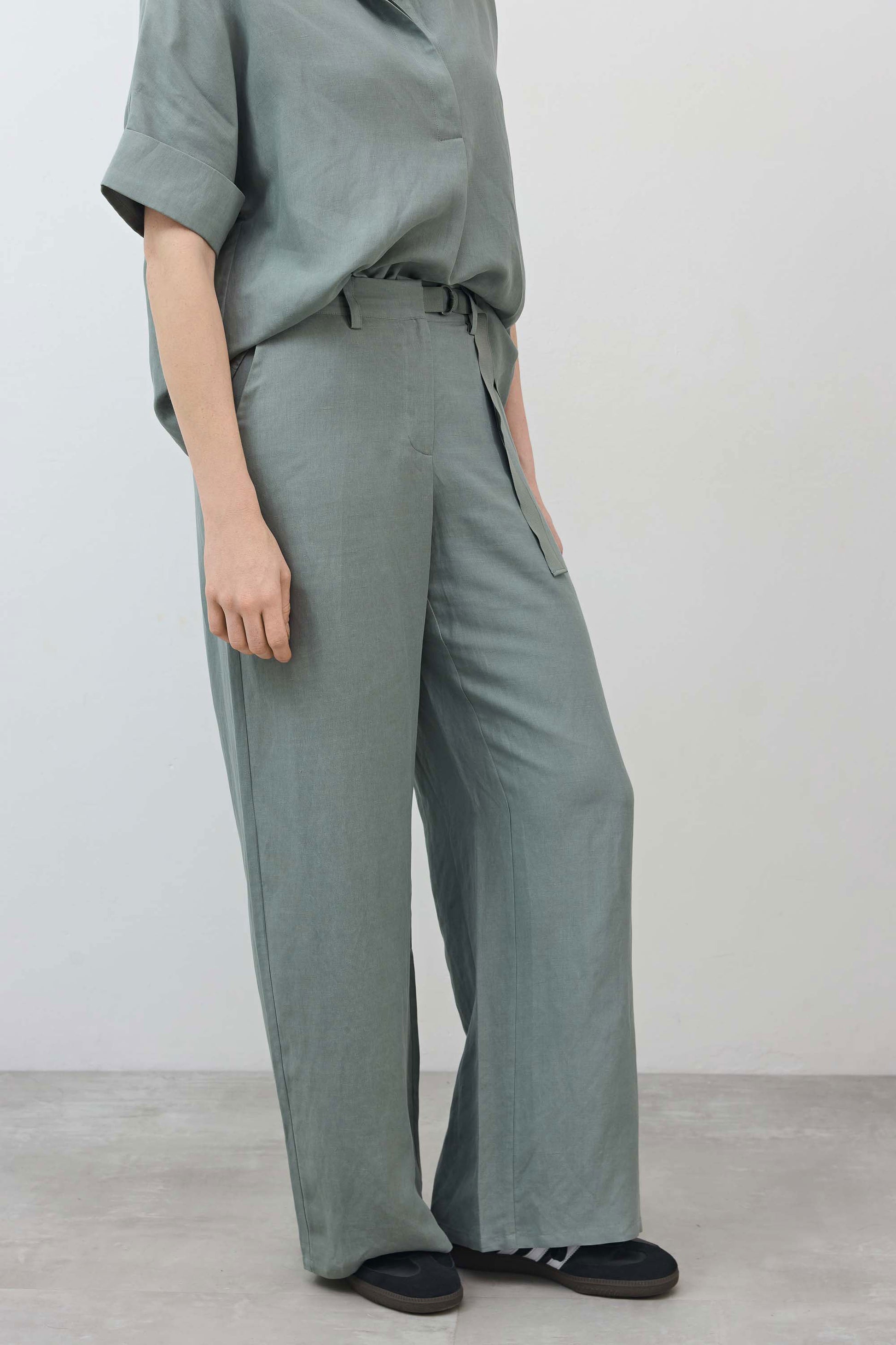 An easy, everyday take on wide-leg trousers. Designed with a relaxed fit through the leg and a flattering rise, these pants feature a self-tie belt and a subtle elastic waistband at the back for added comfort and flexibility. Comfortable enough for all day, polished enough to feel put together.
