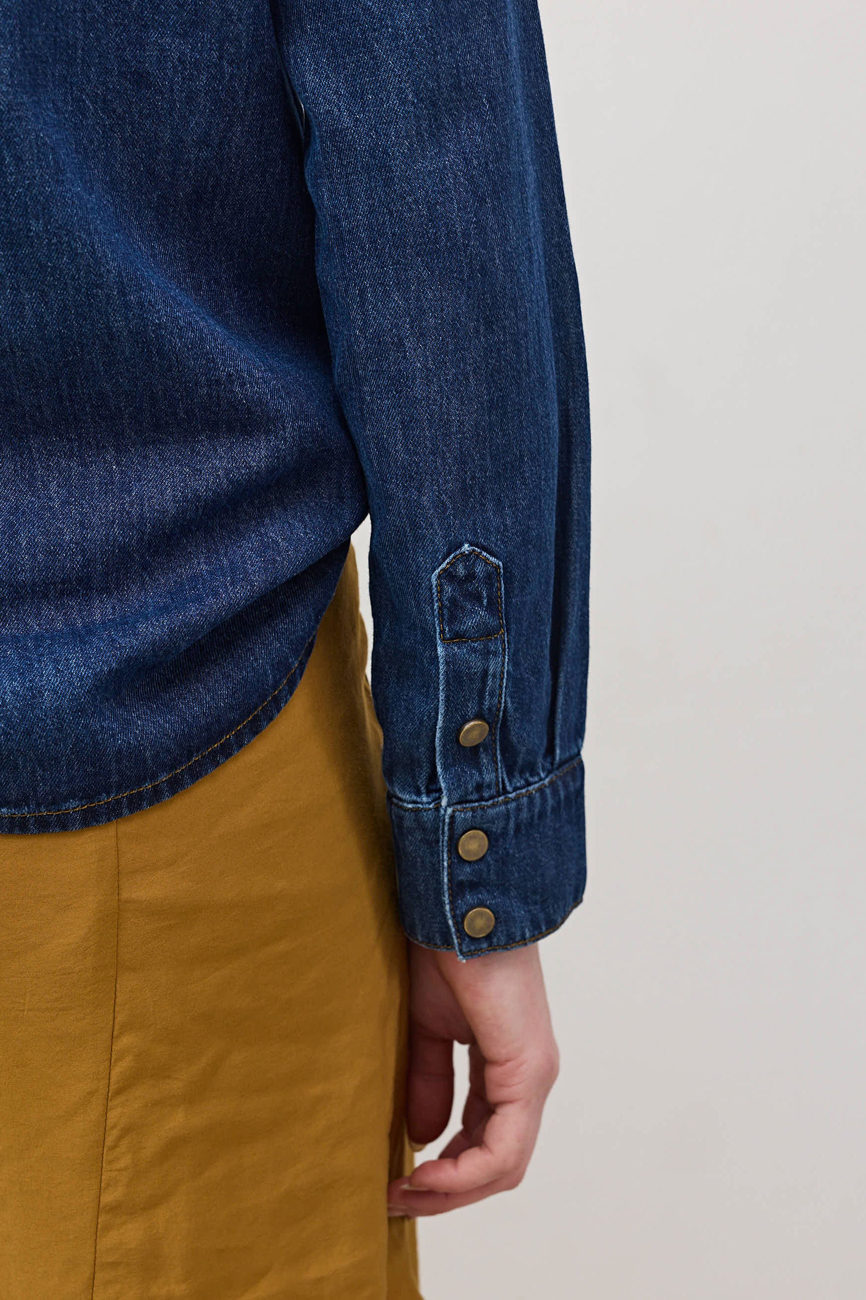 A timeless, workwear-inspired denim shirt crafted in a versatile medium wash. Designed with classic tailoring and durable construction, this piece blends everyday utility with elevated heritage styling — ideal for layering or wearing on its own year-round.