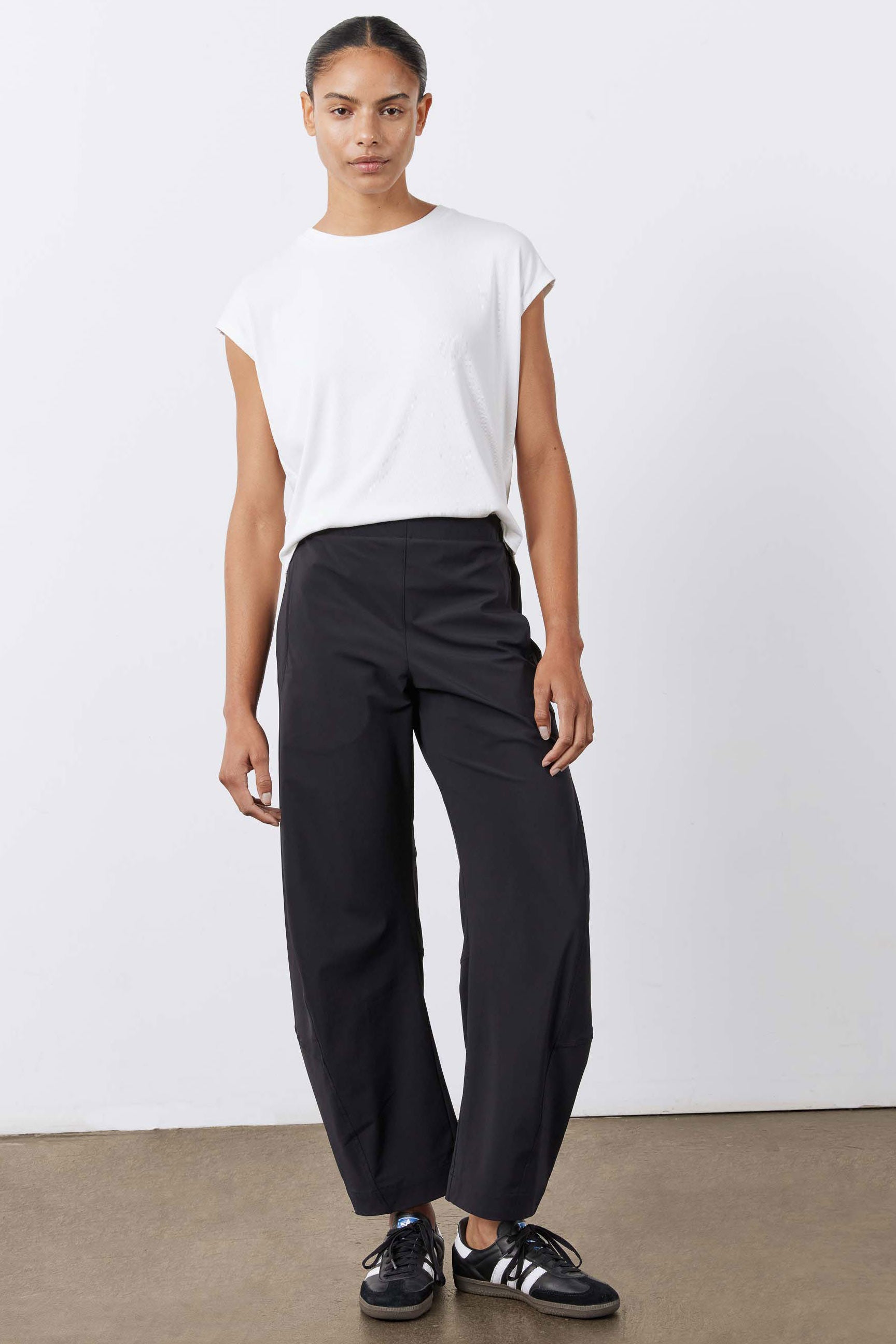 The secret behind Ruti's pants: a hidden elastic waistband in the back. Designed to prioritize comfort without sacrificing style.