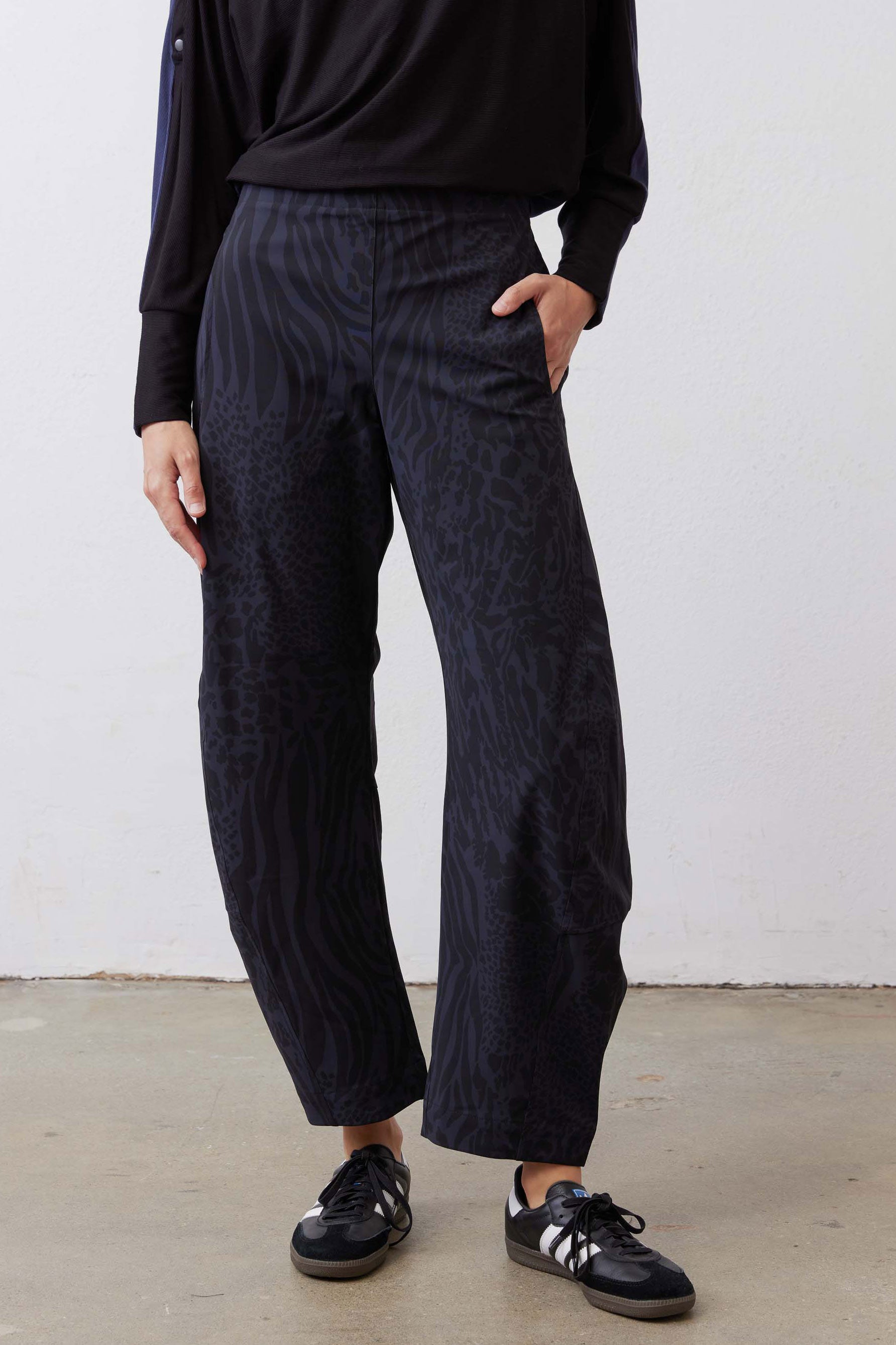 The secret behind Ruti's pants: a hidden elastic waistband in the back. Designed to prioritize comfort without sacrificing style.