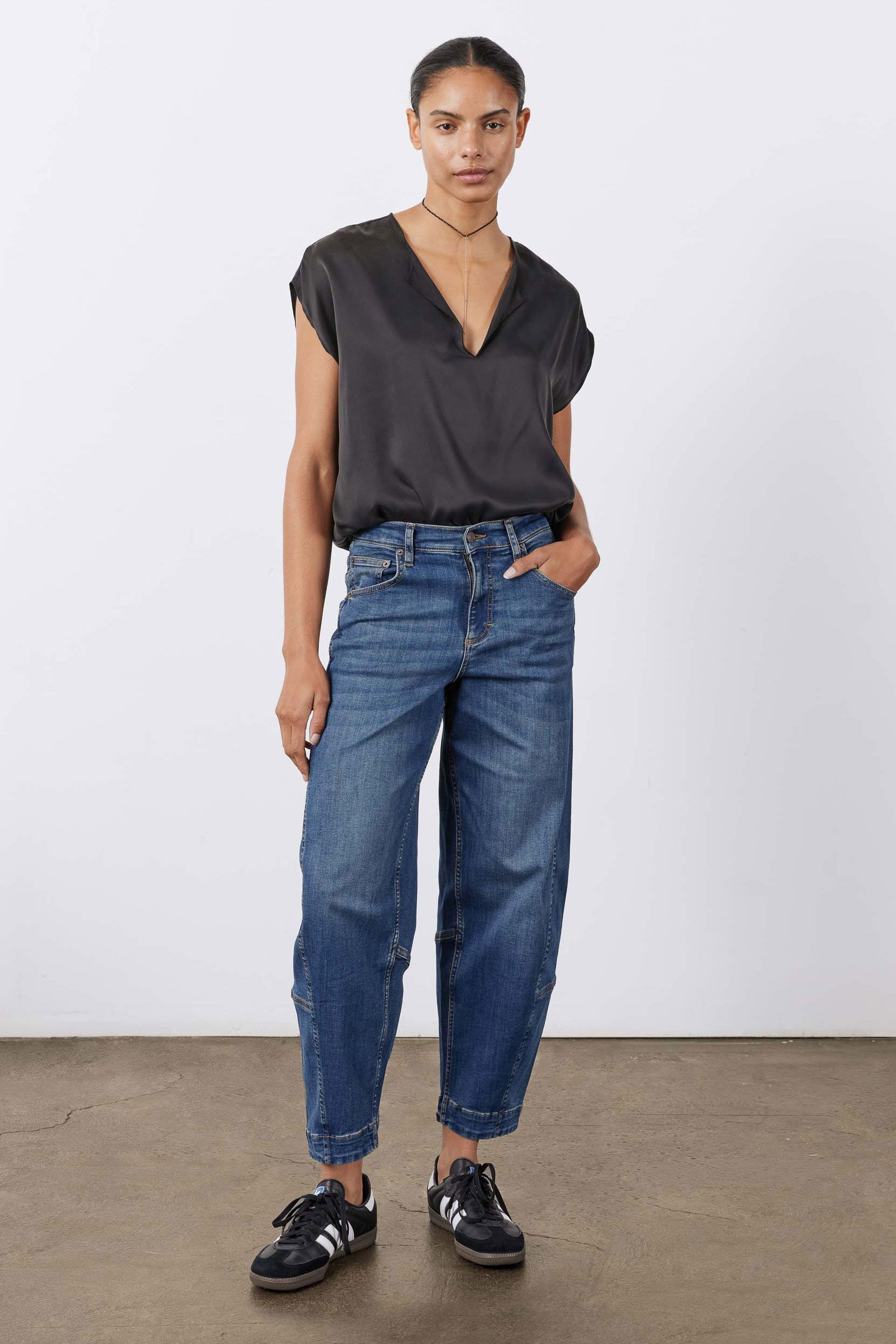 The signature barrel shape redefines relaxed denim — sculpted through the leg, easy at the hip, and cropped just right.