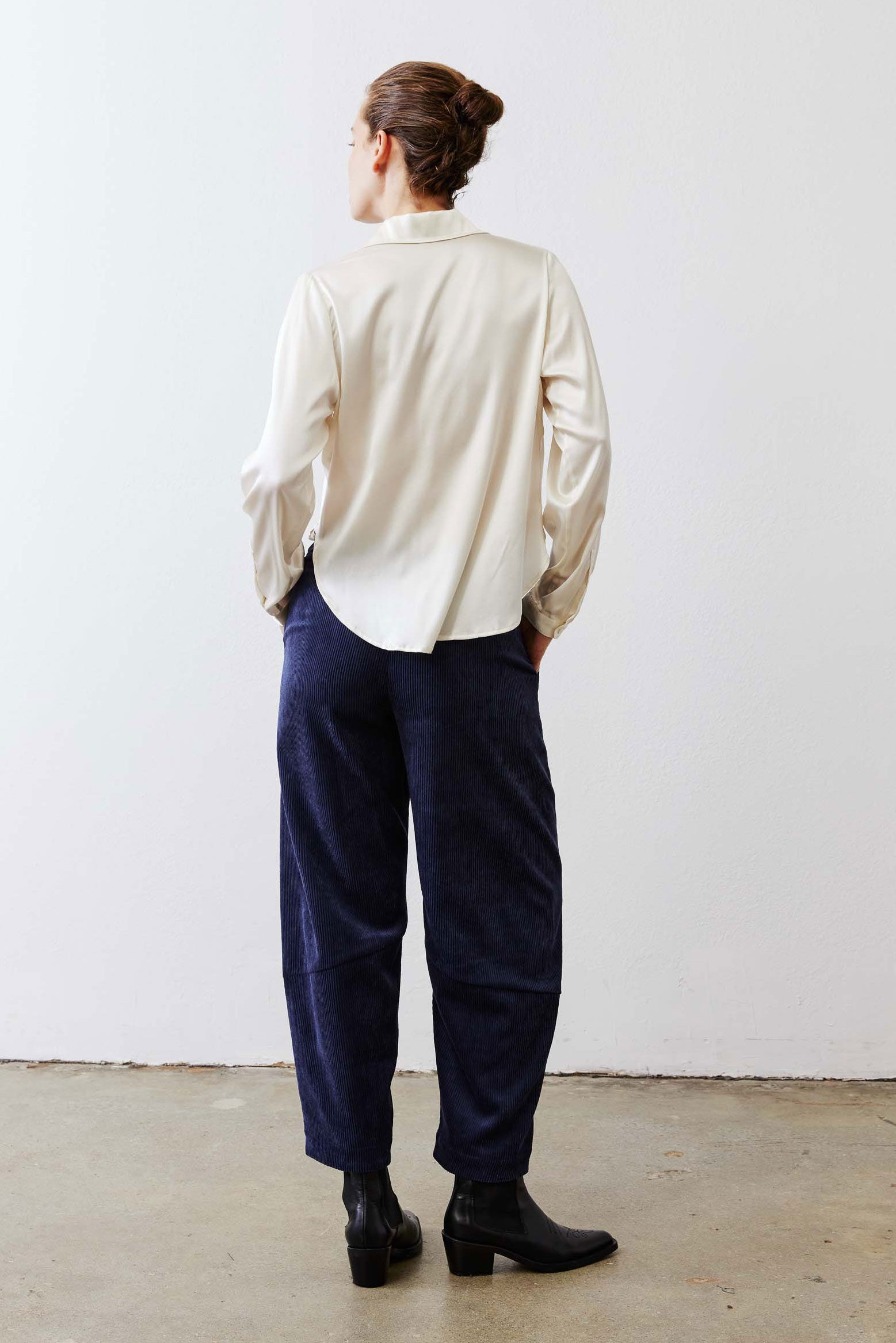 An effortless popover blouse in fluid washable silk with a relaxed drape. Designed with a split neckline and long sleeves for timeless polish.