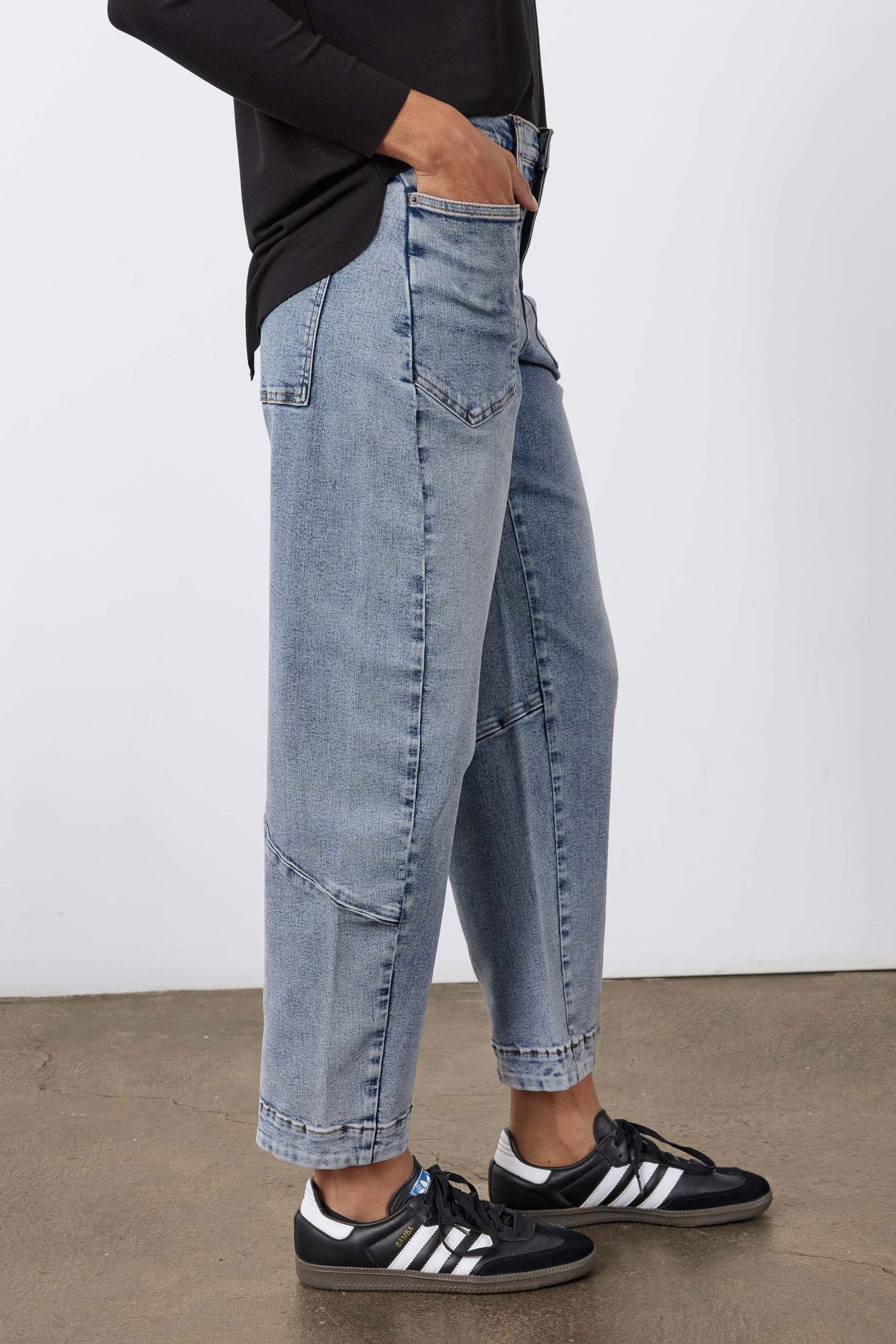 Meet your new go-to denim.They’re relaxed in all the right places, with a tapered leg that flatters and a clean, structured fit. Boxy patch pockets and a subtle back yoke add just the right amount of utility and shape. Hits above the ankle for a modern, easy finish.