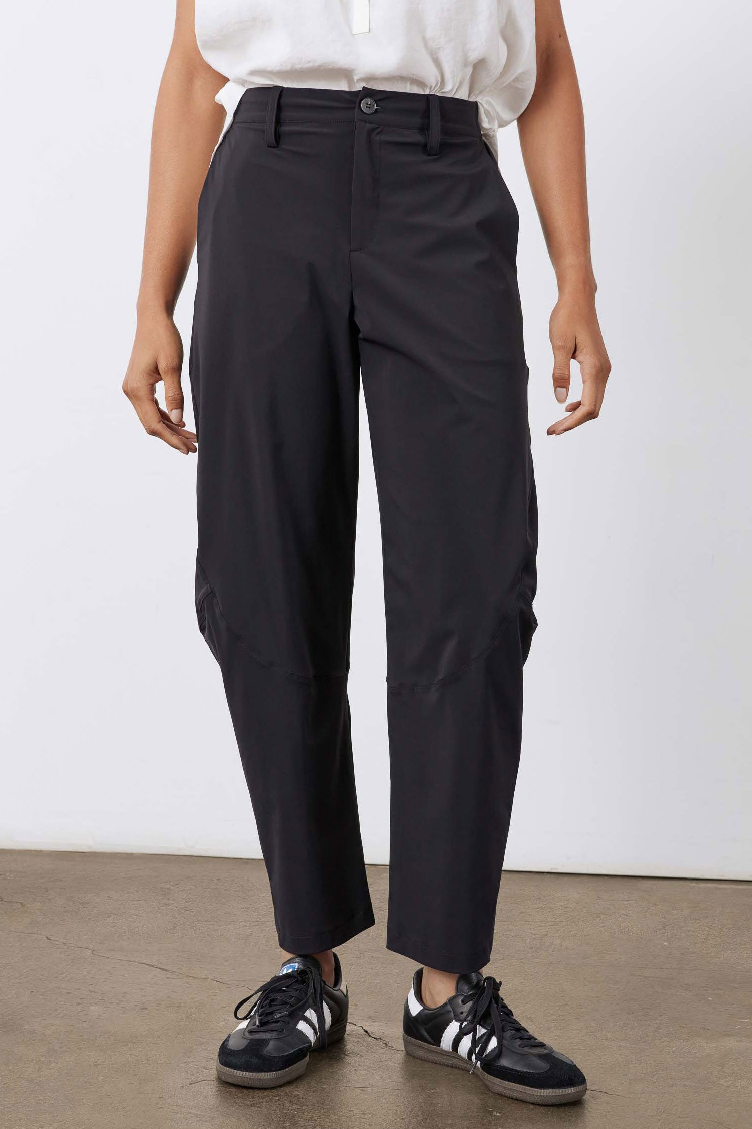 The secret behind Ruti's pants: a hidden elastic waistband in the back. Designed to prioritize comfort without sacrificing style.